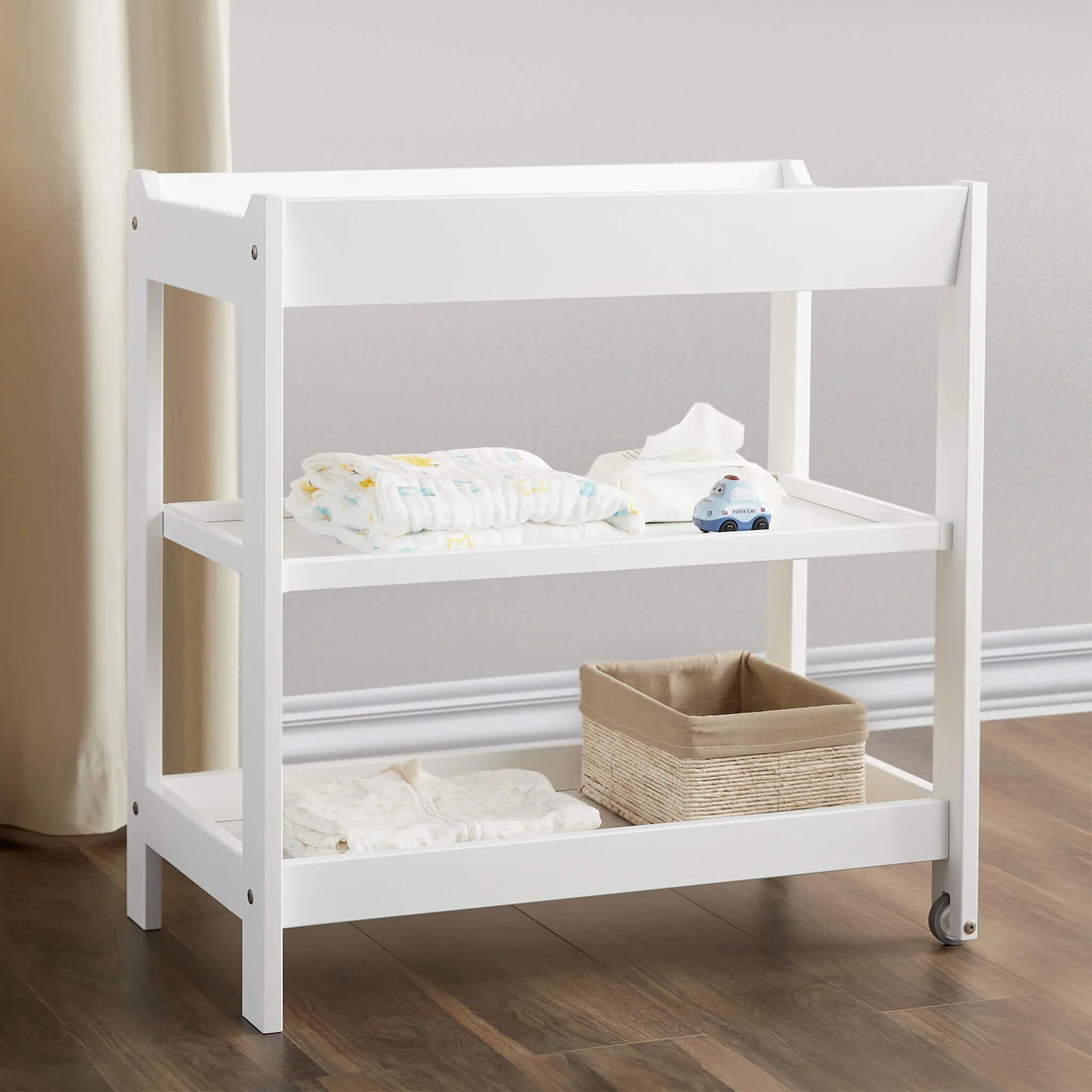 Offering a fuss-free baby changing experience, parents can place baby on top of the 3 Tier Changer during changes and easily reach down to the middle or bottom shelf to grab those baby essentials. The top shelf has been designed with deeper sides, offering peace of mind that baby is safe and secure whilst they lay on your chosen changing mat.