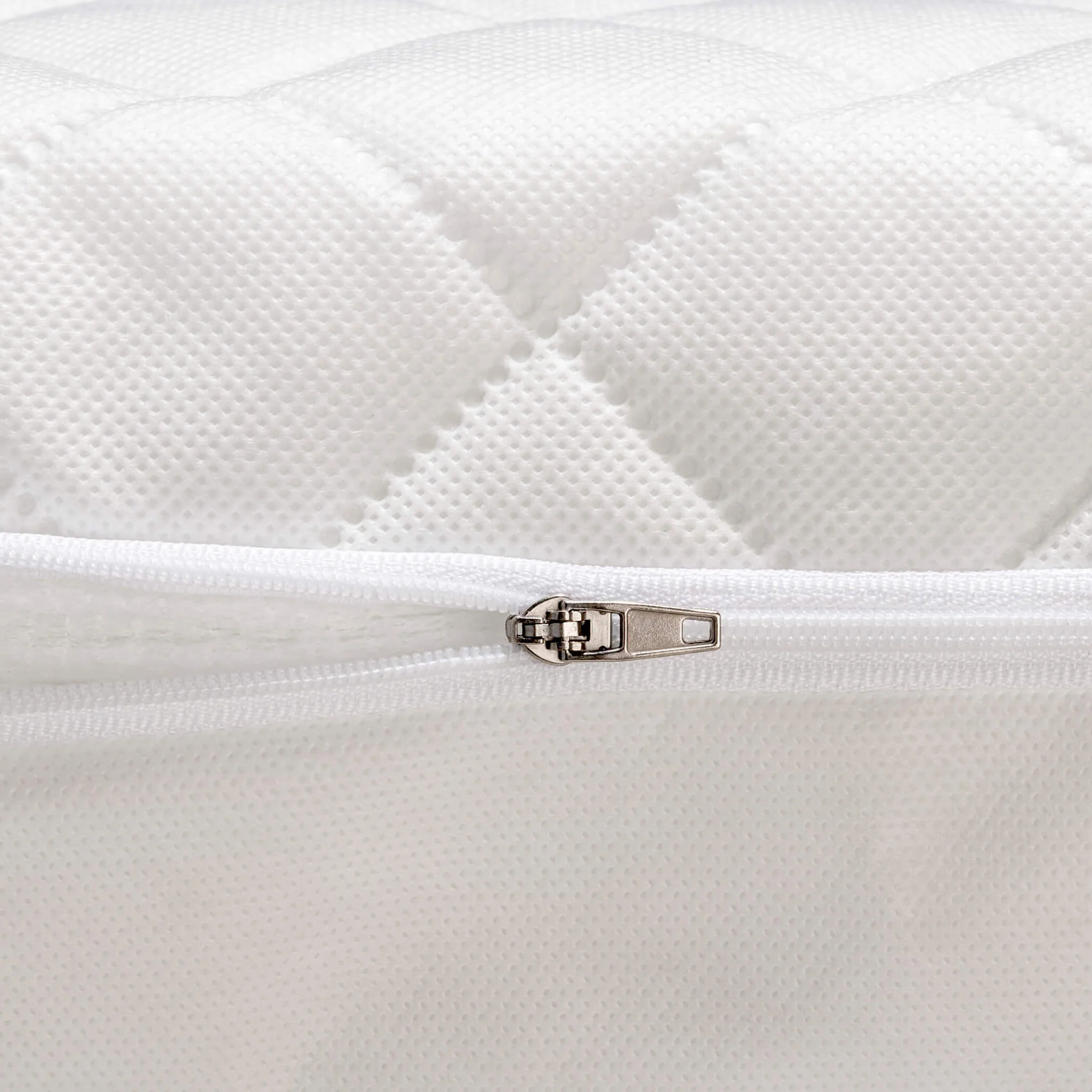 An adjustable waterproof membrane protects the mattress core and a removable quilted cover allows for easy cleaning.