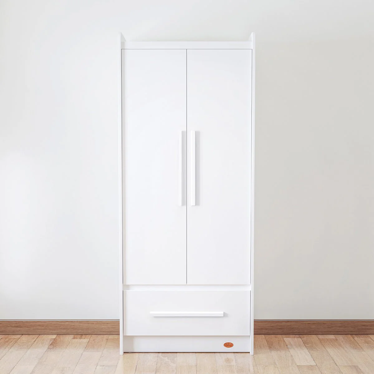 Featuring a contemporary two-tone design with natural woodgrain finish, the Neat 2 Door Wardrobe is designed to complement our Natty nursery and kids' furniture ranges. Clean, modern lines and minimal fuss-free styling mean the Neat 2 Door Wardrobe will suit a wealth of interior designs.