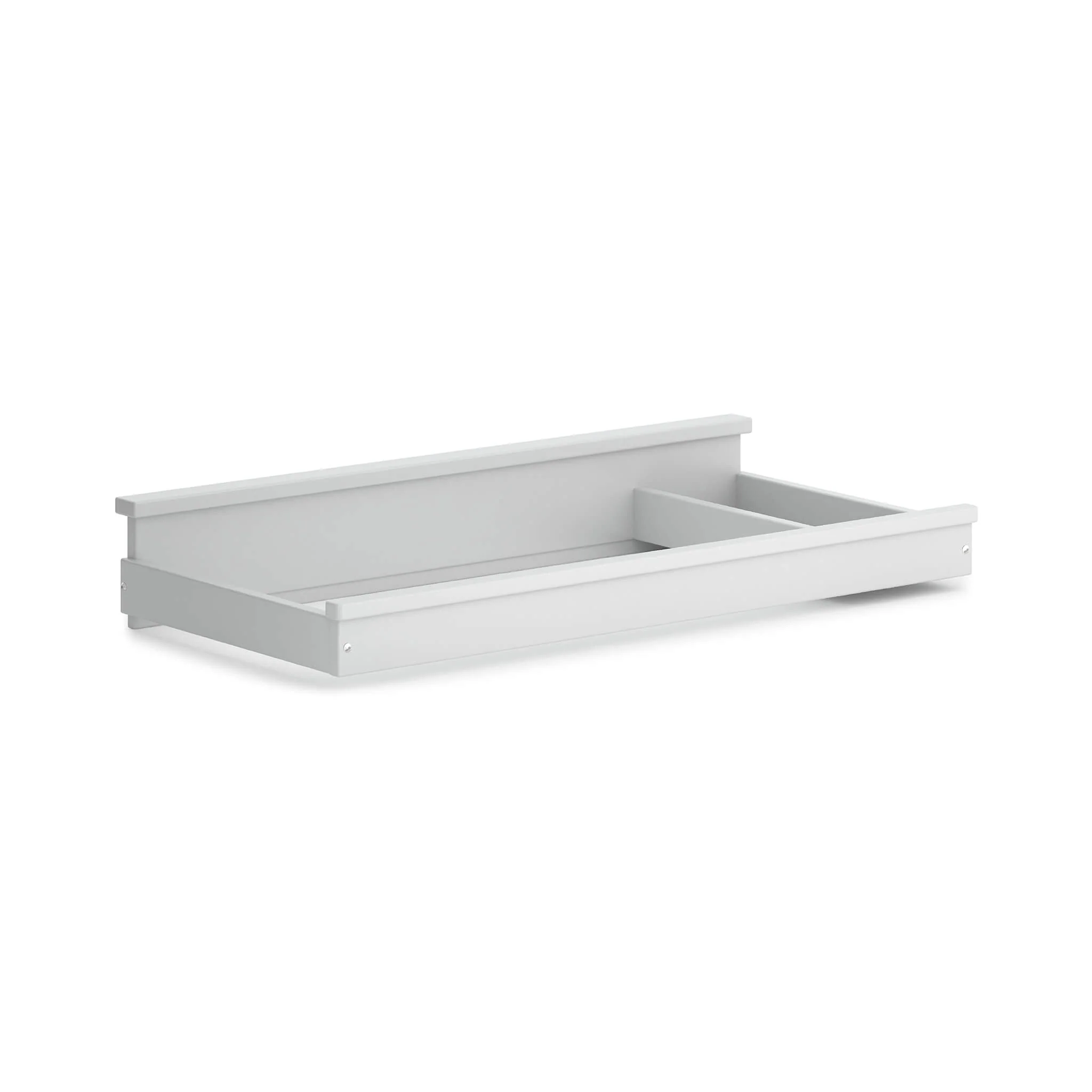 Crafted from Australian Araucaria timber with an Eco-Blend Bio-Paint finish, this change tray can be fixed to the back of a Boori 3 drawer dresser via two bolt holes. Its square pelmet is designed to match similar styled cot beds, including our Eton range. Featuring a divider to separate your accessories from your changing space, this divided space has false bottom that protects your beautiful dresser from any leaks or spills.