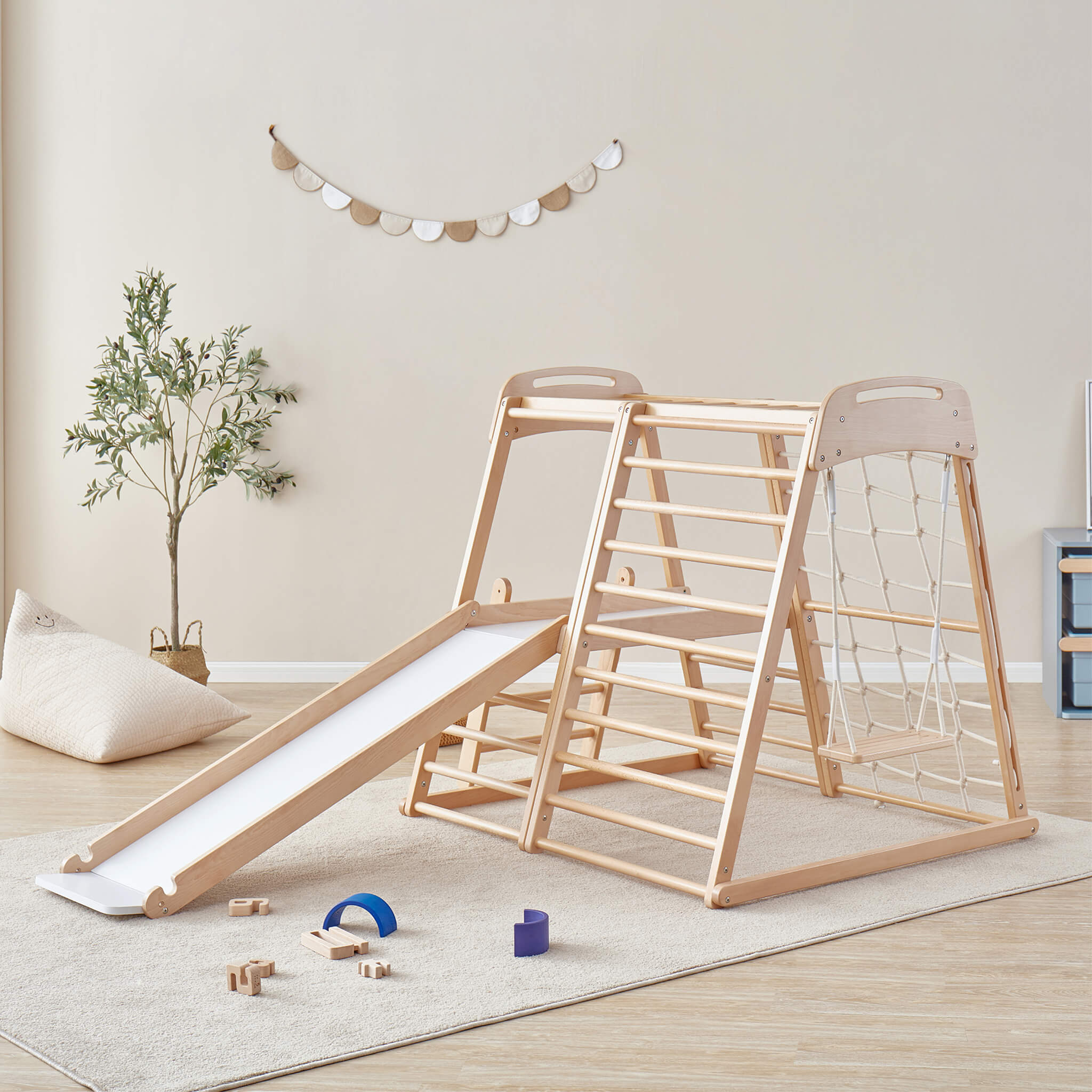 When it's not being used for play, why not transform the climbing frame into the ultimate den? Fill the base with cosy floor cushions and drape blankets over the top to create a perfect little nook for reading or a movie marathon.